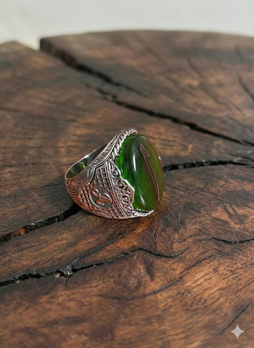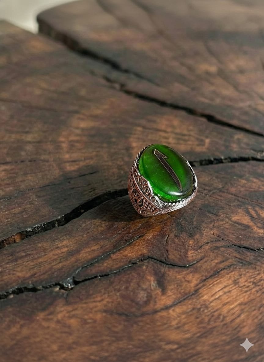 Yüzüğün merkezinde yer alan Elif (ا) motifi, sade çizgisiyle derin ve güçlü bir anlam taşır.