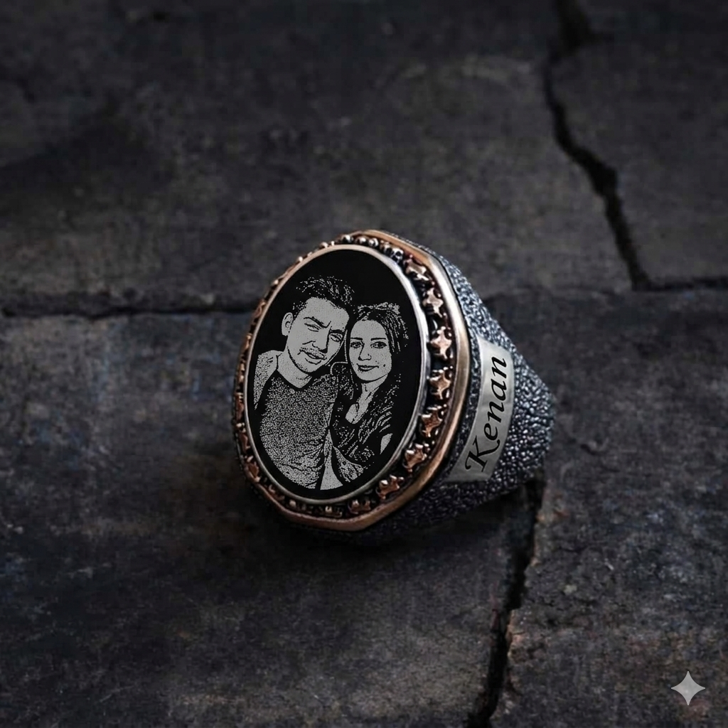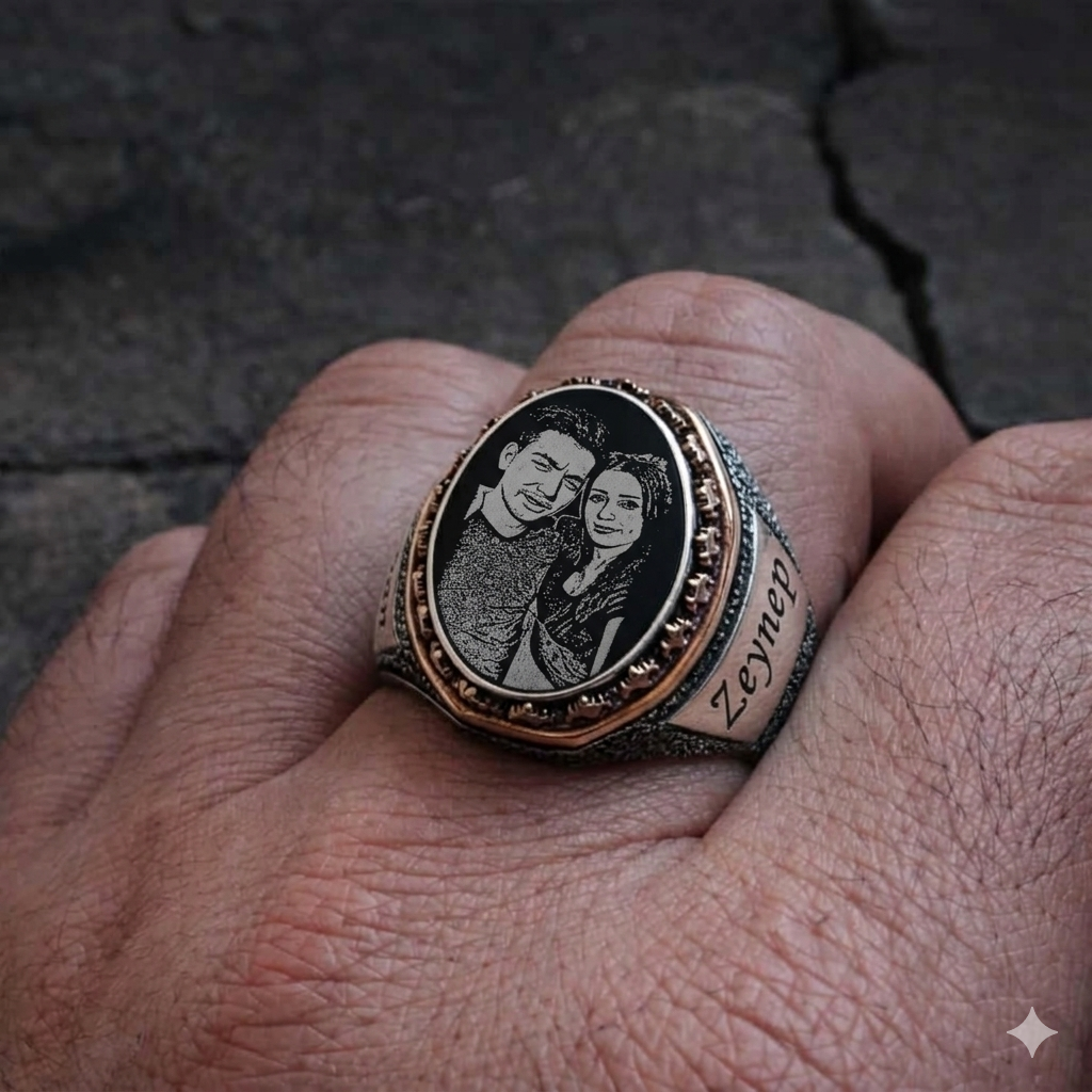 Kişiye özel tasarım yüzüklerle, ona asla unutamayacağı bir hediye verin. 💝 Sevdiklerinizin portrelerini ve isimlerini içeren bu şık yüzük, kalıcı bir anı seçeneği. Fiyat ve sipariş için WhatsApp üzerinden yazabilirsiniz.”